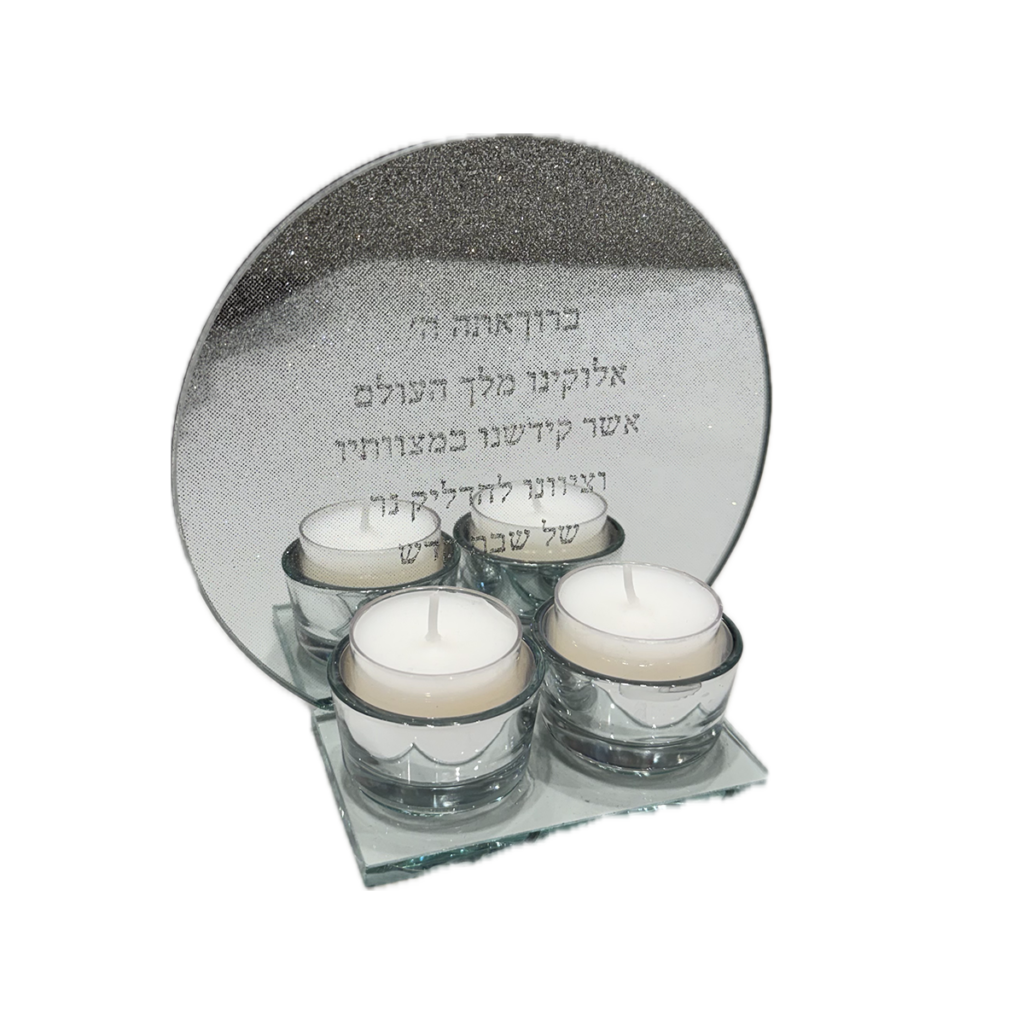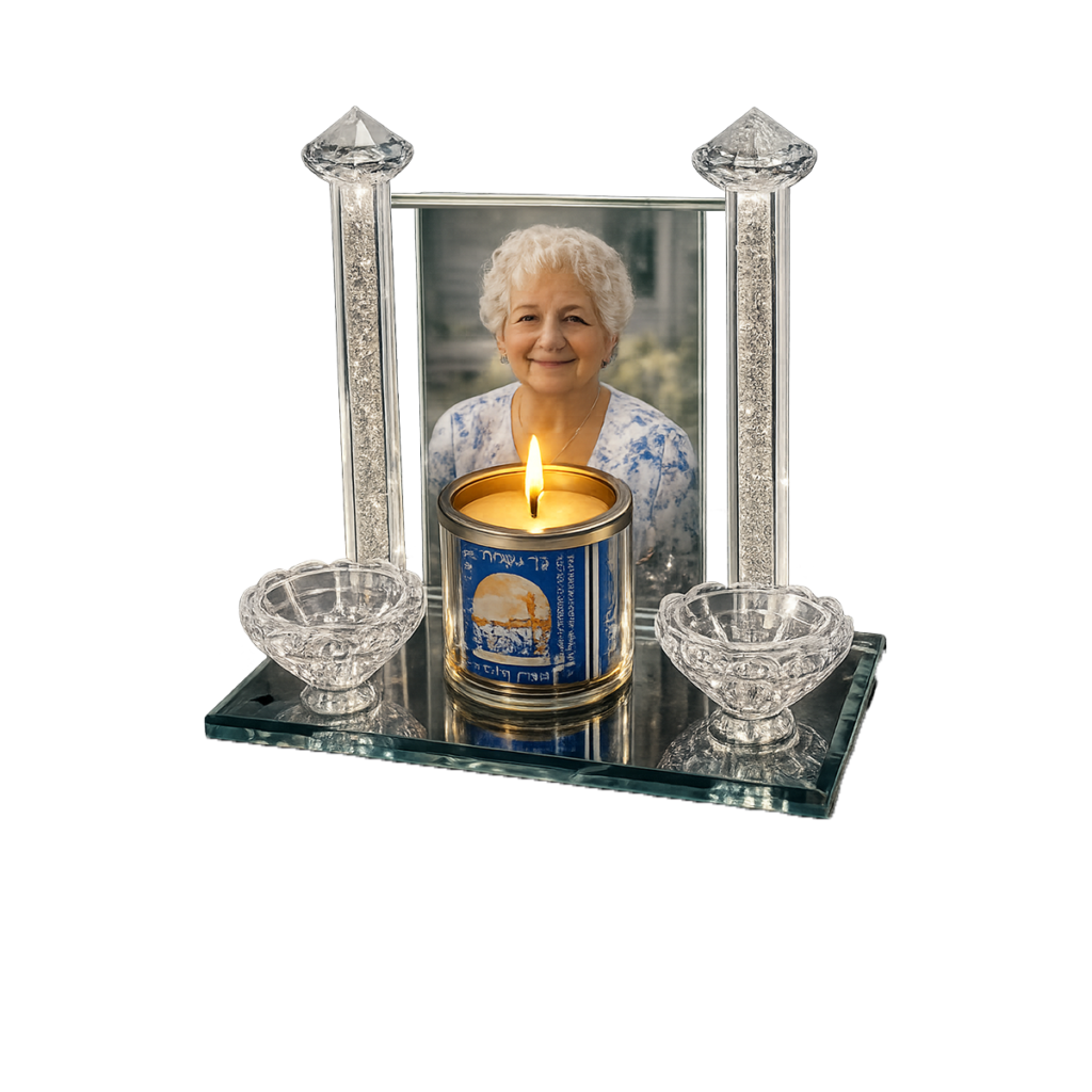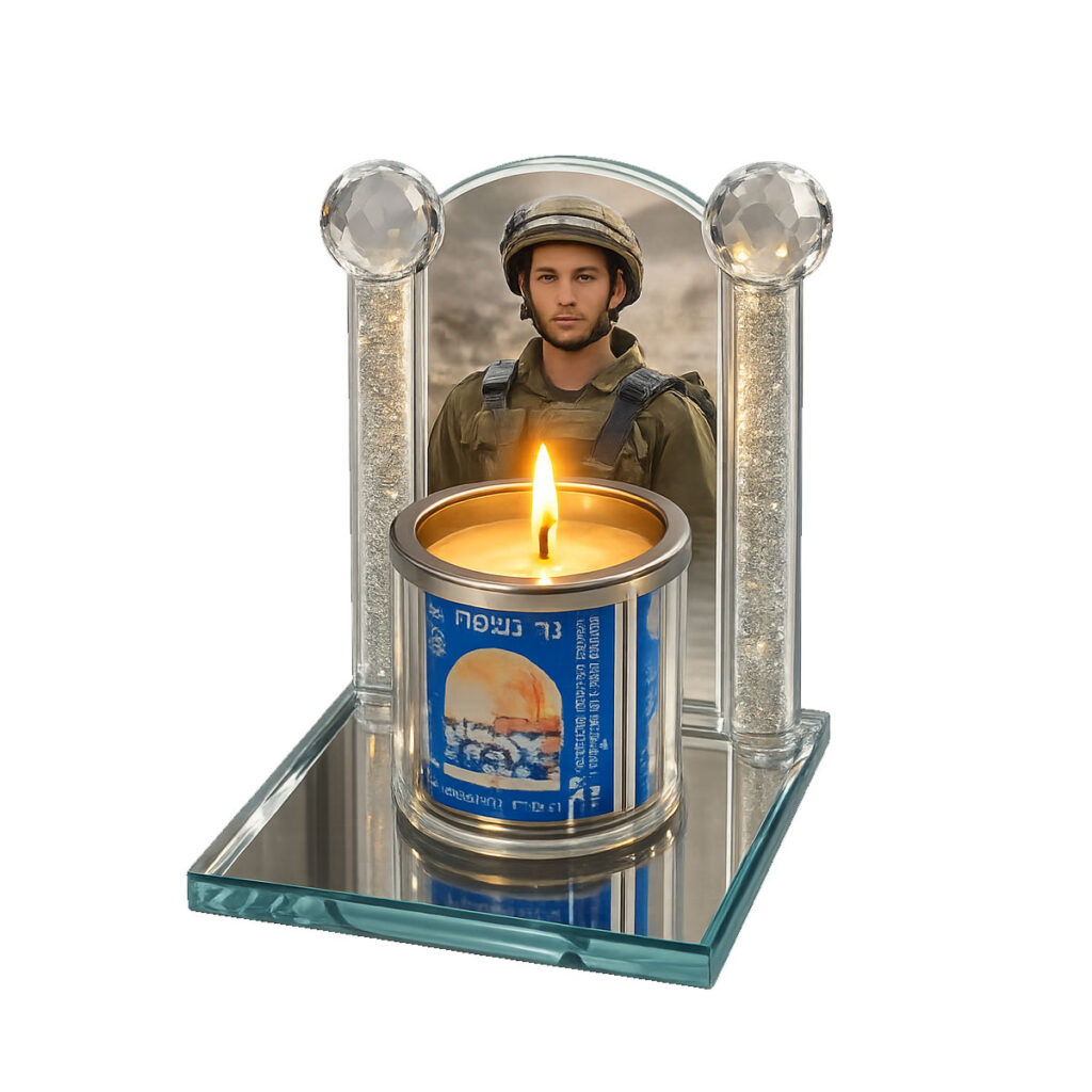 פמוט קריסטל לנר נשמה בשילוב זוג נרות ומקום לתמונה